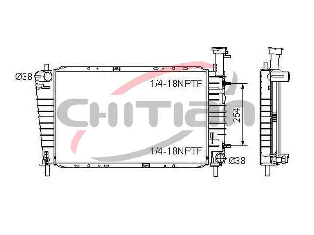 Name: RadiatorPart No.: CT-FD120Remark: Depth (mm):26Length (mm):608Transmission ():ATWidth (mm):361OEM Number