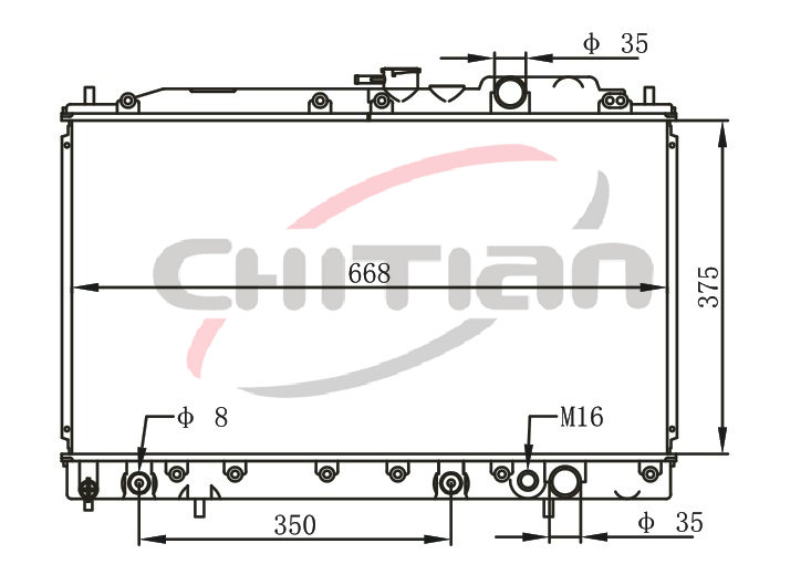 Name: RadiatorPart No.: CT-MB171Remark: Depth (mm):16Length (mm):668Transmission ():ATWidth (mm):375OEM Number