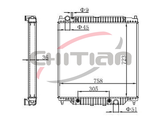 Name: 散热器Part No.: CT-FD190Remark: 变速箱 ():AT长度 (mm):758厚度 (mm):36宽度 (mm):723OEM Number