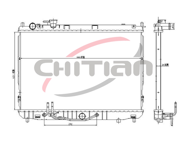 Name: 散热器Part No.: CT-KI038Remark: 变速箱 ():AT长度 (mm):668厚度 (mm):26宽度 (mm):430OEM Number