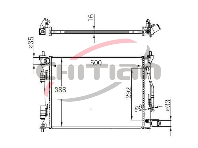 Name: RadiatorPart No.: CT-KI097Remark: Depth (mm):16Length (mm):500Transmission ():ATWidth (mm):388OEM Number