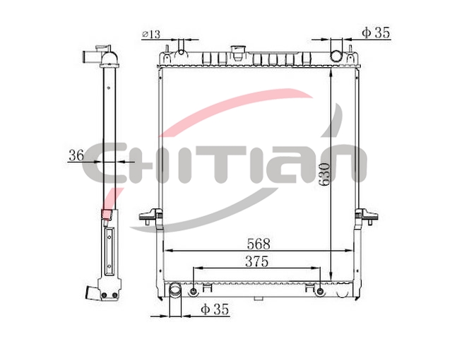 Name: RadiatorPart No.: CT-NS258Remark: Depth (mm):36Length (mm):630Transmission ():ATWidth (mm):568OEM Number