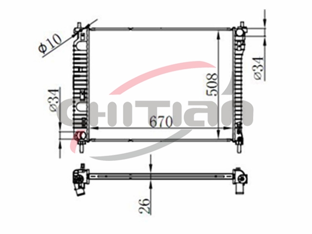Name: 散热器Part No.: CT-CV194Remark: 变速箱 ():MT长度 (mm):670厚度 (mm):26宽度 (mm):508OEM Number