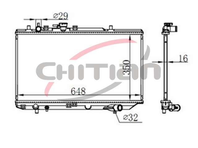 Name: RadiatorPart No.: CT-FD121Remark: Depth (mm):16Length (mm):648Transmission ():MTWidth (mm):350OEM Number