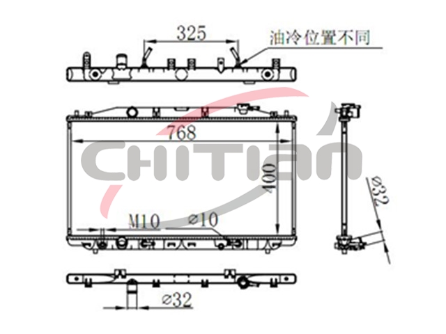 Name: 散热器Part No.: CT-HD160Remark: 变速箱 ():AT长度 (mm):768厚度 (mm):16宽度 (mm):400OEM Number