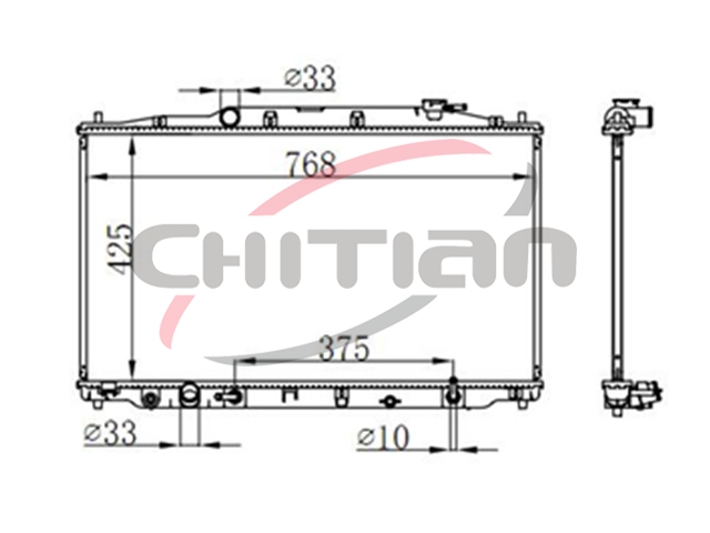 Name: RadiatorPart No.: CT-HD170Remark: Depth (mm):16Length (mm):768Transmission ():ATWidth (mm):425OEM Number