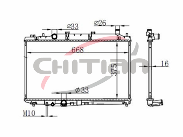 Name: 散热器Part No.: CT-HD181Remark: 变速箱 ():MT长度 (mm):668厚度 (mm):16宽度 (mm):375OEM Number