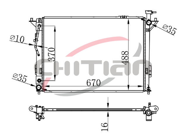 Name: RadiatorPart No.: CT-HY115Remark: Depth (mm):16Length (mm):670Transmission ():ATWidth (mm):478OEM Number