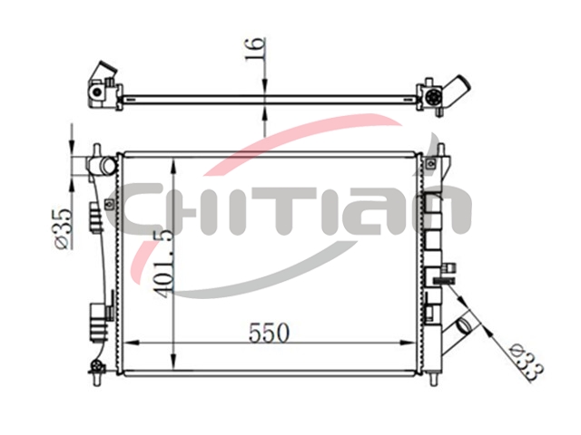 Name: RadiatorPart No.: CT-KI115Remark: Depth (mm):16Length (mm):550Transmission ():MTWidth (mm):398OEM Number