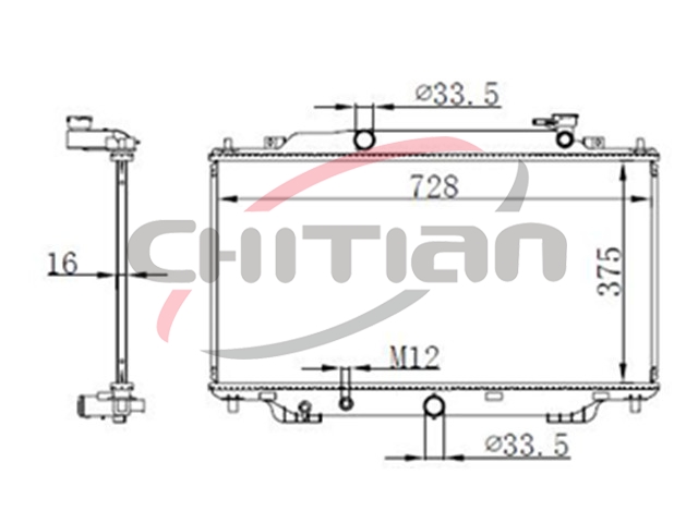 Name: RadiatorPart No.: CT-MZ102Remark: Depth (mm):16Length (mm):728Transmission ():MTWidth (mm):375OEM Number