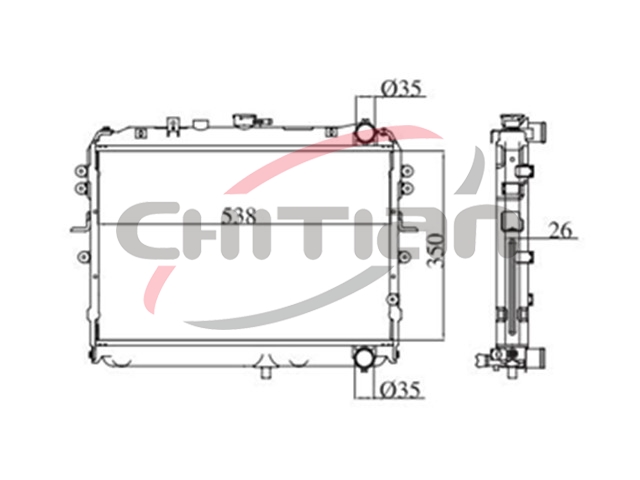 Name: 散热器Part No.: CT-MZ153Remark: 变速箱 ():MT长度 (mm):538厚度 (mm):16宽度 (mm):350OEM Number