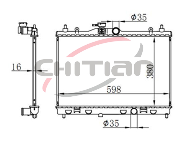 Name: RadiatorPart No.: CT-NS273Remark: Depth (mm):16Length (mm):588Transmission ():MTWidth (mm):380OEM Number