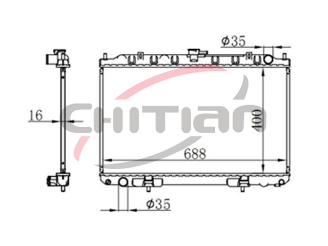 Name: RadiatorPart No.: CT-NS306Remark: Depth (mm):16Length (mm):688Transmission ():MTWidth (mm):400OEM Number