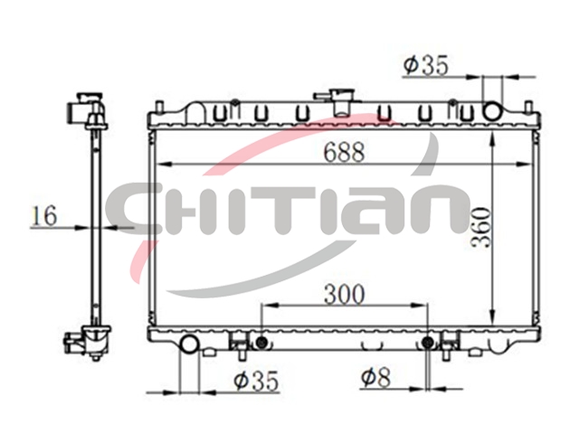 Name: RadiatorPart No.: CT-NS324Remark: Depth (mm):16Length (mm):688Transmission ():ATWidth (mm):360OEM Number