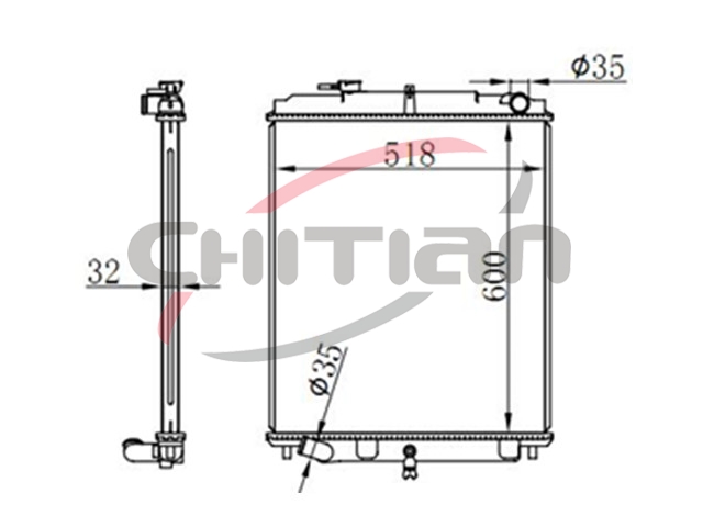 Name: RadiatorPart No.: CT-NS330Remark: Depth (mm):32Length (mm):600Transmission ():MTWidth (mm):518OEM Number