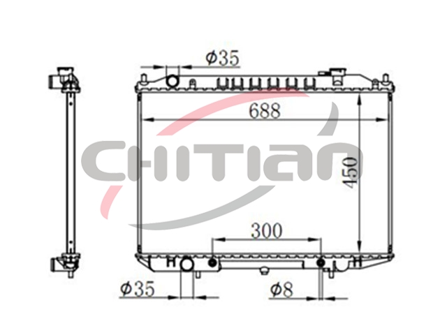 Name: RadiatorPart No.: CT-NS354Remark: Depth (mm):16Length (mm):688Transmission ():ATWidth (mm):450OEM Number