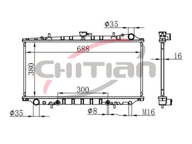 Name: RadiatorPart No.: CT-NS386Remark: Depth (mm):16Length (mm):688Transmission ():ATWidth (mm):380OEM Number