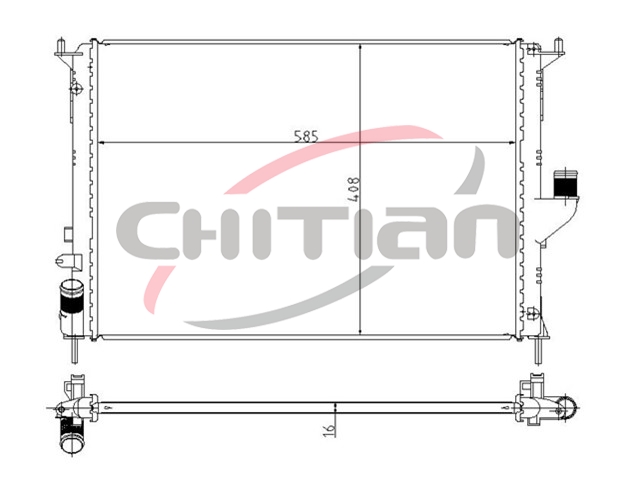 Name: RadiatorPart No.: CT-RN030Remark: Depth (mm):16Length (mm):585Transmission ():MTWidth (mm):408OEM Number