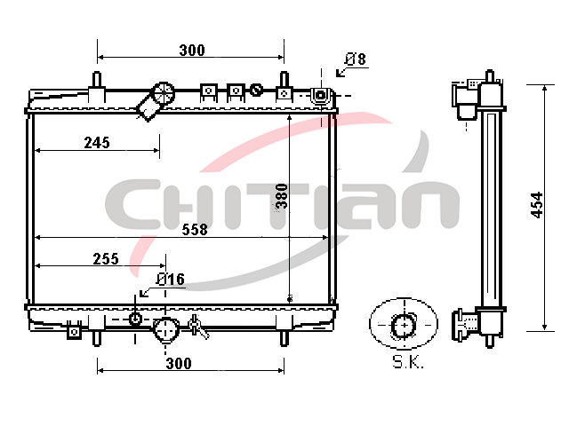 Name: RadiatorPart No.: CT-PG033Remark: Depth (mm):26Length (mm):538Transmission ():MTWidth (mm):380OEM Number