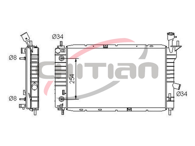 Name: RadiatorPart No.: CT-FD134Remark: Depth (mm):26Length (mm):608Transmission ():ATWidth (mm):361OEM Number