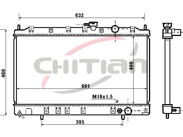 Name: RadiatorPart No.: CT-MB189Remark: Depth (mm):16Length (mm):678Transmission ():MTWidth (mm):400OEM Number