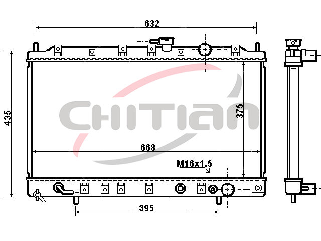 Name: RadiatorPart No.: CT-MB031Remark: Depth (mm):16Length (mm):658Transmission ():ATWidth (mm):375OEM Number