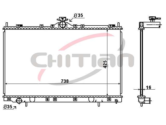 Name: RadiatorPart No.: CT-MB181Remark: Depth (mm):16Length (mm):738Transmission ():MTWidth (mm):425OEM Number