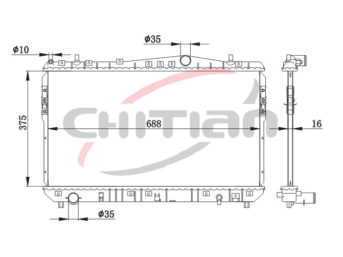 Name: RadiatorPart No.: CT-DW016Remark: Depth (mm):16Length (mm):375Transmission ():MTWidth (mm):688OEM Number