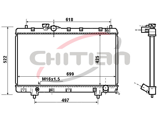 Name: RadiatorPart No.: CT-TY508Remark: Depth (mm):16Length (mm):688Transmission ():MTWidth (mm):425OEM Number