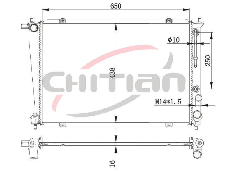 Name: RadiatorPart No.: CT-HY095Remark: Depth (mm):16Length (mm):650Transmission ():ATWidth (mm):438OEM Number