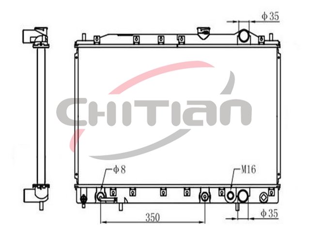 Name: RadiatorPart No.: CT-MB016Remark: Depth (mm):32Length (mm):668Transmission ():ATWidth (mm):375OEM Number