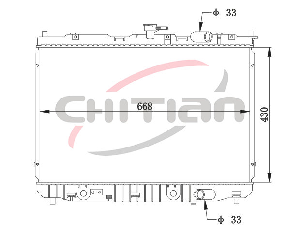 Name: RadiatorPart No.: CT-KI037Remark: Depth (mm):26Length (mm):668Transmission ():MTWidth (mm):430OEM Number