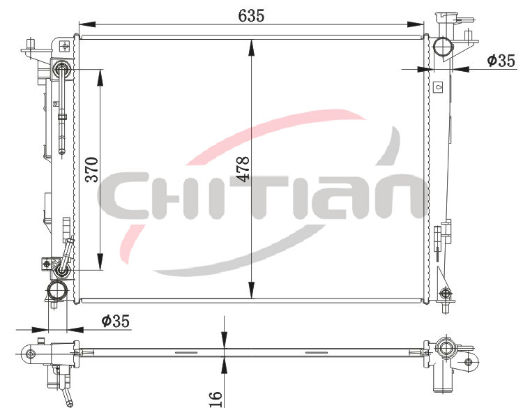 Name: RadiatorPart No.: CT-HY102Remark: Depth (mm):16Length (mm):635Transmission ():ATWidth (mm):478OEM Number