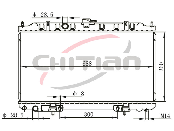 Name: RadiatorPart No.: CT-NS052Remark: Depth (mm):16Length (mm):688Transmission ():ATWidth (mm):360OEM Number