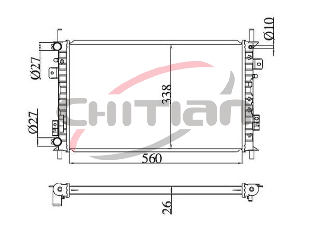 Name: RadiatorPart No.: CT-FD197Remark: Depth (mm):26Length (mm):560Transmission ():MTWidth (mm):338OEM Number