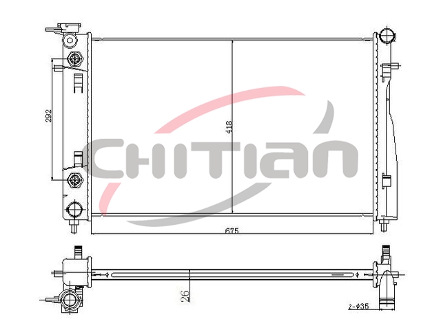 Name: RadiatorPart No.: CT-HL024Remark: Depth (mm):32Length (mm):675Transmission ():ATWidth (mm):418OEM Number