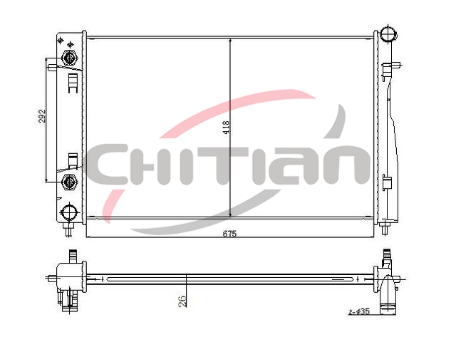 Name: RadiatorPart No.: CT-HL029Remark: Depth (mm):26Length (mm):675Transmission ():ATWidth (mm):428OEM Number