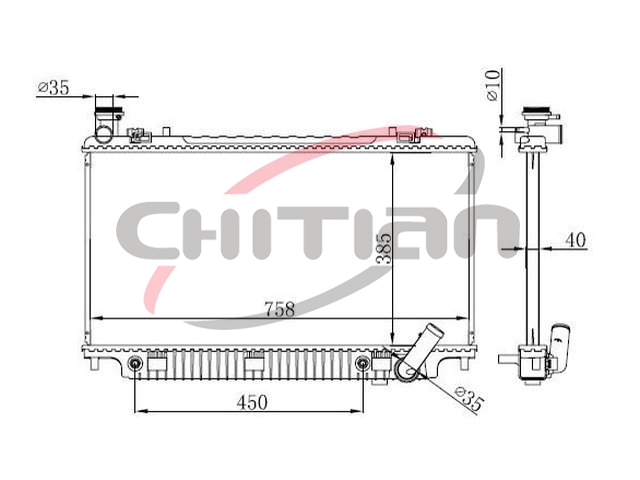 Name: RadiatorPart No.: CT-HL041Remark: Depth (mm):26Length (mm):758Transmission ():ATWidth (mm):385OEM Number