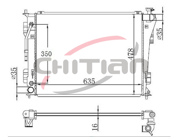 Name: RadiatorPart No.: CT-HY106Remark: Depth (mm):16Length (mm):635Transmission ():ATWidth (mm):478OEM Number