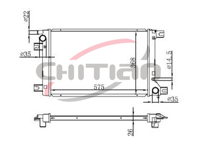 Name: RadiatorPart No.: CT-MB075Remark: Depth (mm):26Length (mm):575Transmission ():MTWidth (mm):368OEM Number