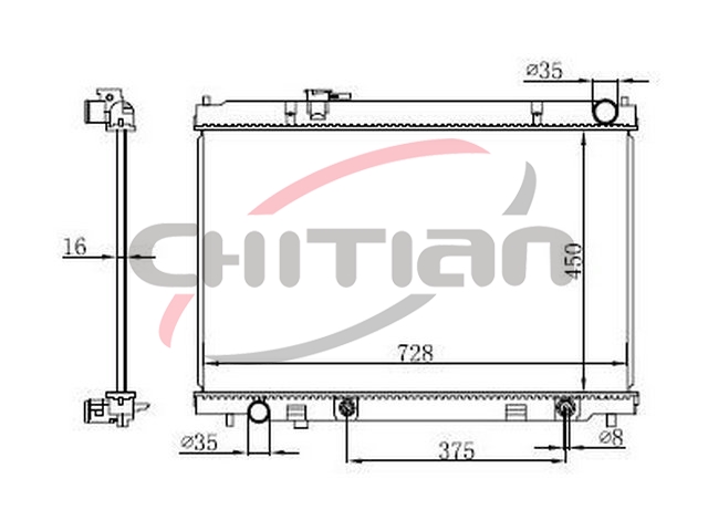 Name: RadiatorPart No.: CT-NS034Remark: Depth (mm):16Length (mm):728Transmission ():ATWidth (mm):450OEM Number