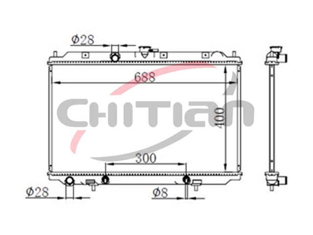 Name: RadiatorPart No.: CT-NS240Remark: Depth (mm):16Length (mm):688Transmission ():ATWidth (mm):400OEM Number