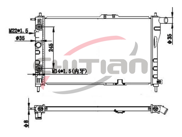 Name: RadiatorPart No.: CT-DW018Remark: Depth (mm):16Length (mm):635Transmission ():ATWidth (mm):378OEM Number
