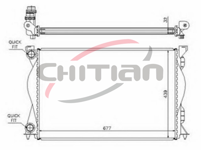 Name: RadiatorPart No.: CT-AU030Remark: Depth (mm):32Length (mm):677Transmission ():MTWidth (mm):438OEM Number