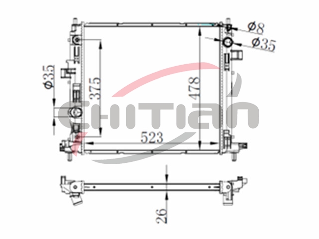 Name: RadiatorPart No.: CT-CD025Remark: Depth (mm):26Length (mm):523Transmission ():ATWidth (mm):478OEM Number