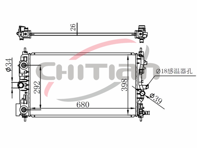 Name: RadiatorPart No.: CT-CV059Remark: Depth (mm):26Length (mm):680Transmission ():ATWidth (mm):398OEM Number