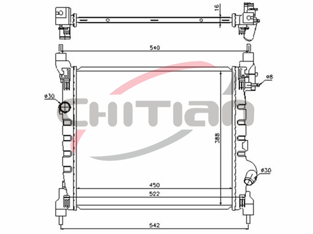 Name: RadiatorPart No.: CT-CV135Remark: Depth (mm):16Length (mm):450Transmission ():MTWidth (mm):388OEM Number