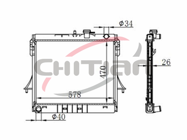 Name: RadiatorPart No.: CT-CV190Remark: Depth (mm):26Length (mm):578Transmission ():MTWidth (mm):470OEM Number