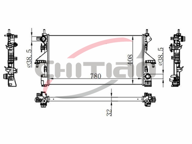 Name: RadiatorPart No.: CT-CV209Remark: Depth (mm):32Length (mm):780Transmission ():MTWidth (mm):408OEM Number