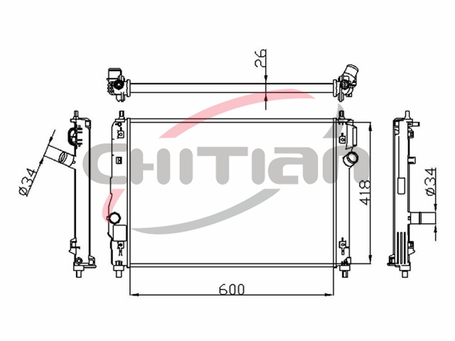 Name: RadiatorPart No.: CT-DW043Remark: Depth (mm):26Length (mm):600Transmission ():MTWidth (mm):418OEM Number